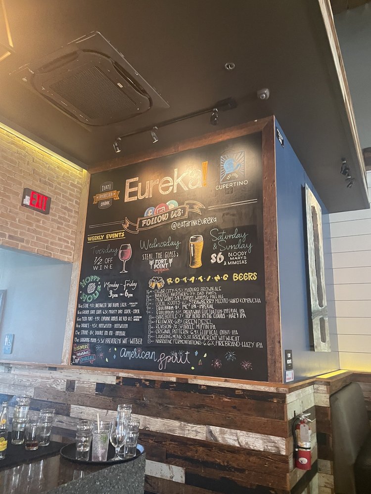 Introducing Eureka! - Cupertino, an American restaurant located at 19369 Stevens Creek Blvd Ste 130 Cupertino, CA 95014. This classy yet casual establishment offers a wide range of options for diners, including Pescatarian, Vegan, and many Vegetarian choices. With amenities like outdoor seating, free Wi-Fi, and a full bar, Eureka! caters to a diverse group of customers, from families to groups looking for a fun night out. The menu features happy hour specials, and the restaurant even offers military discounts. Not to mention, the food is served in compostable containers with plastic-free packaging, showing a commitment to sustainability. Whether you're looking for a quick lunch or a leisurely dinner, Eureka! - Cupertino has something for everyone.